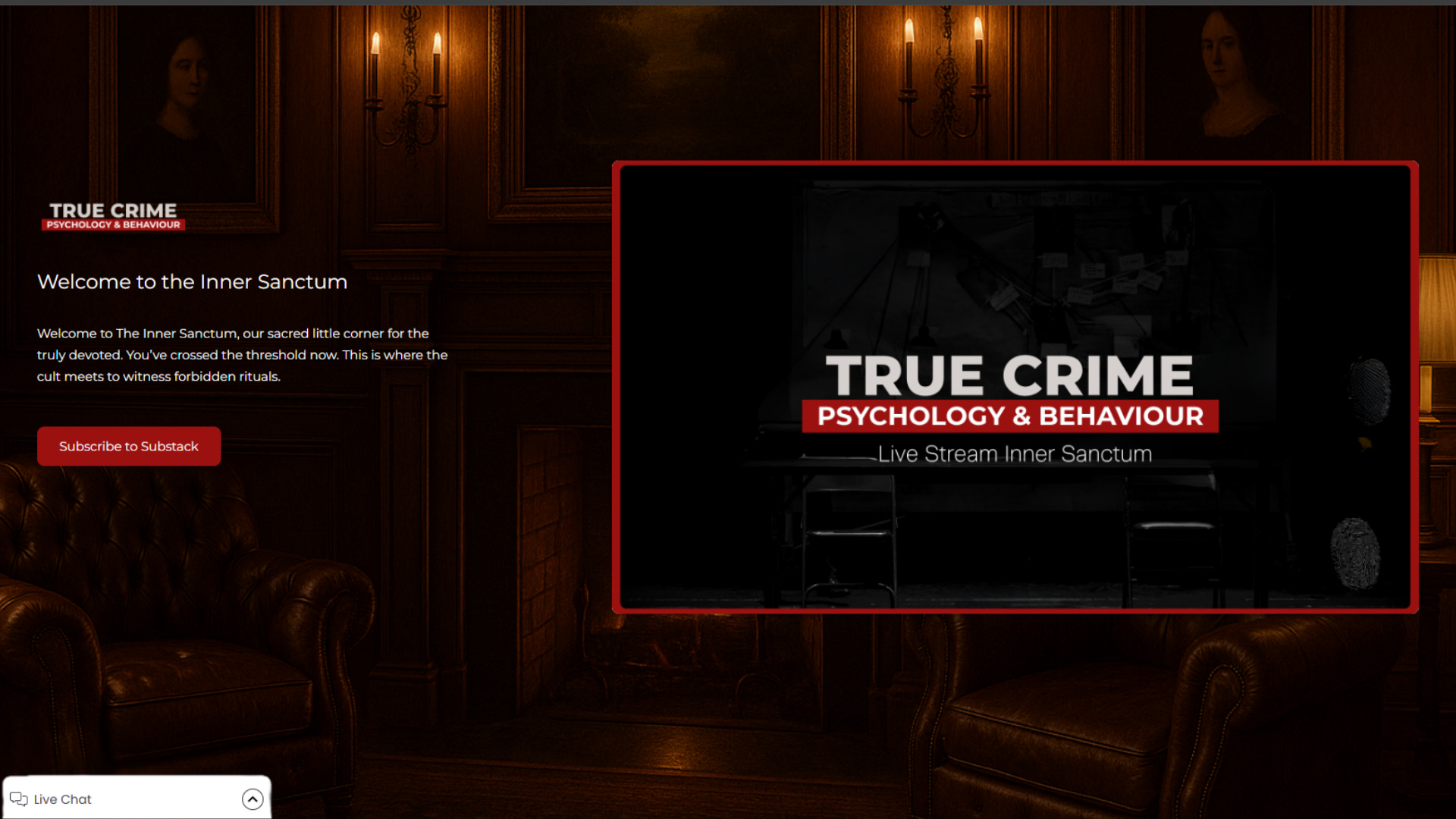 The Inner Sanctum is our new private viewing space, a members-only livestream page where we’ll be able to watch full episodes of documentaries, crime TV and everything else, together.